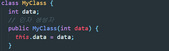 ▲ MyClass라는 클래스를 만들고 맴버로 data와 인자생성자 하나를 생성했다.