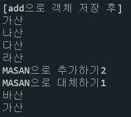 특정 인덱스 위치에 새로운 객체가 저장이되고 기존 객체는 삭제된다.