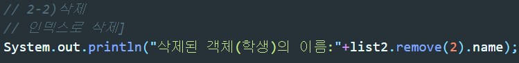 ▲동일하게 remove()메소드에 index를 지정하여 삭제하면 삭제한 객체의 주소가 반환된다.