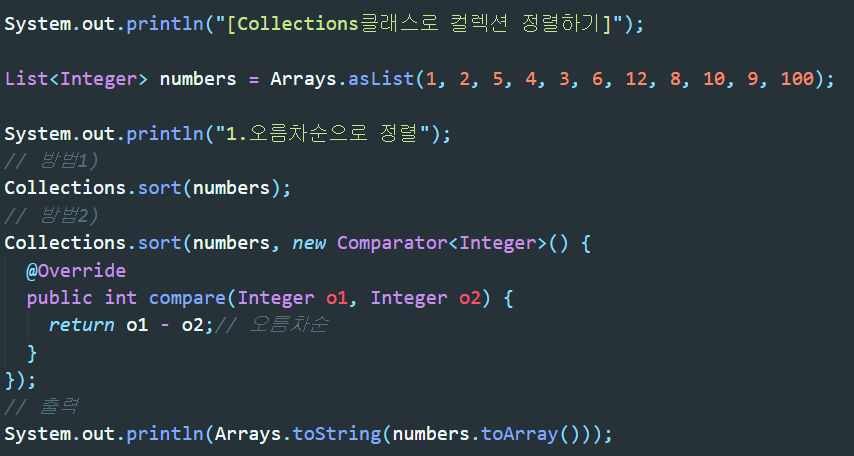 우선 배열과 컬렉션(List계열만)에서의 각각의 오름차순과 내림차순을 사용하는 법은 아래와 같다.