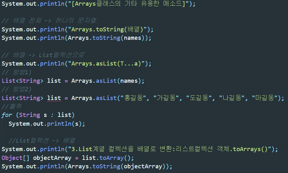 Arrays클래스에는 형변환을 할 수 있는 유용한 메소드들이 있다. 몇가지만 소개해보겠다