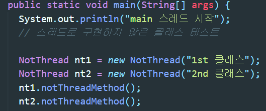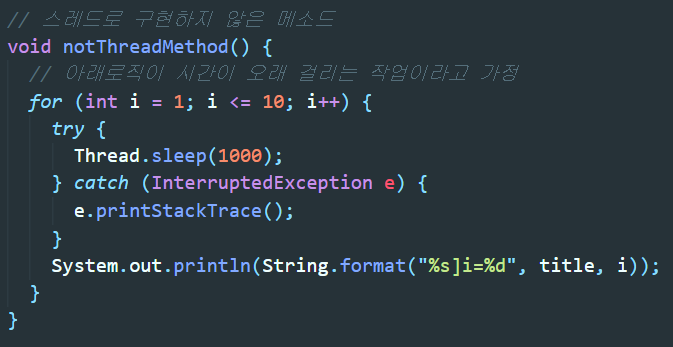 ▲ 그리고 스레드로 구현하지 않고 for문으로 메소드를 하나 만들어보자