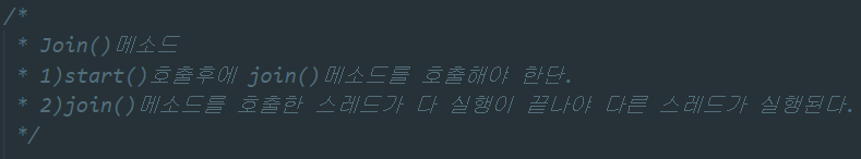 ▲ join()메소드를 사용하면 join()메소드를 호출한 스레드가 다 실행된 후 다른 스레드가 실행되는 기능이다.