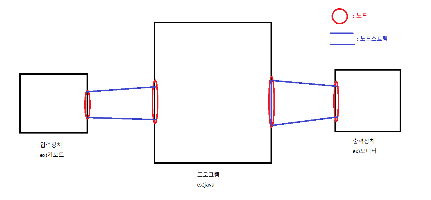 입력장치에 연결된 노드스트림인 입력스트림이라하고 출력장치에 연결된 노드스트림은 출력스트림이라 한다.