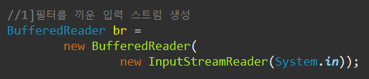 ▲ 키보드는 바이트기반이므로 문자기반의 BufferedReader를 이용해 읽으려면 Reader형 즉, 문자 기반으로 바꿔줘야한다. 따라서 바이트기반입력인 System.in을 InputStreamReader()를 이용해서 문자기반으로 바꾼 후 BufferedReader 변수에 담았다.