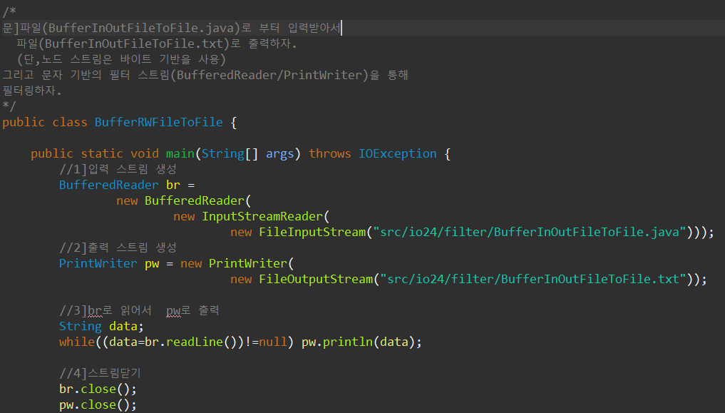 그리고 필터스트림을 통해 필터링하자(BufferedReader/PrintWriter필터 스트림 사용)