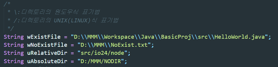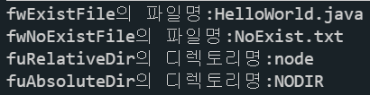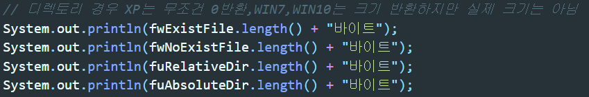 ▲ 순서대로 위에서부터 존재하는 파일경로, 존재하지않는파일경로, 존재하는 디렉토리 경로, 존재하지 않는 디렉토리 경로를 사용하기 쉽게 String형으로 만들어 변수에 담아주자.
