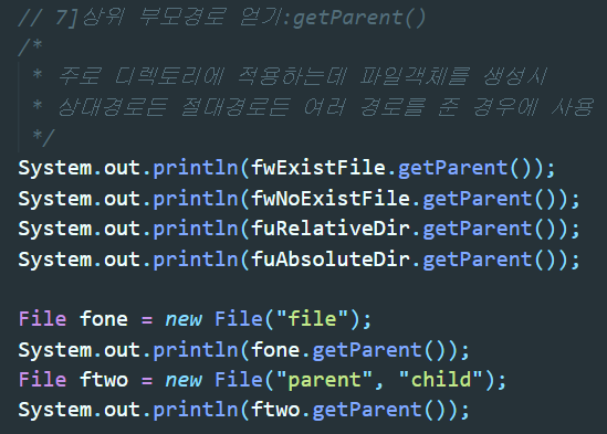 ▲ 파일 또는 디렉토리 바로 위 경로까지를 출력해주는 메소드 getParent()