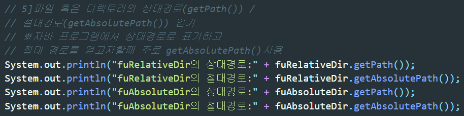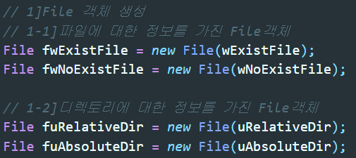 ▲ 각각의 경로들로 File클래스 선언과 동시에 인스턴스화를 했다.