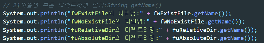 ▲ 경로가 아닌 파일명 또는 디렉토리명을 얻기위해서는 File클래스에 있는 getName()메소드를 사용하면 된다.