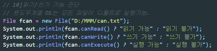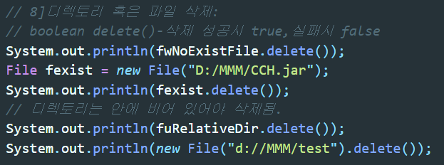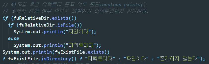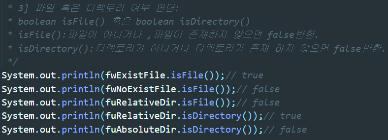▲ 파일인지 혹은 디렉토리인지 판단해주는 메소드. 반환값은 boolean형이다.
