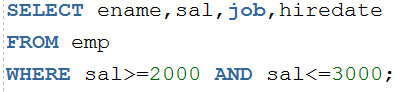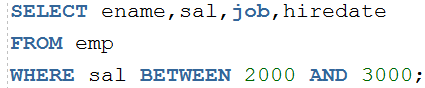 ▲ 위 두 코드는 동일한 내용이다. 연봉이 2000 과 3000 사이에 있는 사람들의 이름,연봉,직책,고용날짜를 출력