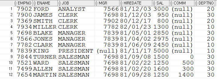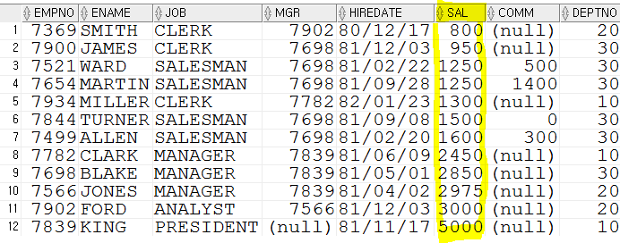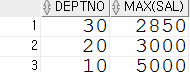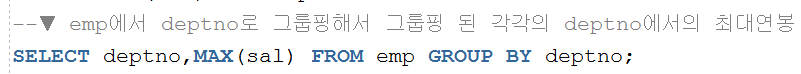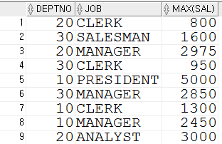 ▲ deptno로 정렬하면 총 3개의 그룹이, 각각의 그룹에서 MAX니까 또 3개의 그룹, 하지만 job은 12개니까