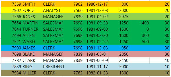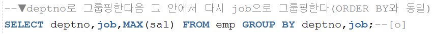 ▲ deptno로 먼저 그룹핑을 한 다음 각각의 그룹안에서 다시 job으로 그룹핑을 한다.
