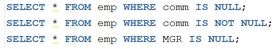 NULL값은 값이 없거나 ,알 수 없거나,적용할 수 없다는 의미이므로 NULL값을 조회하고자 할 경우에 사용한다.