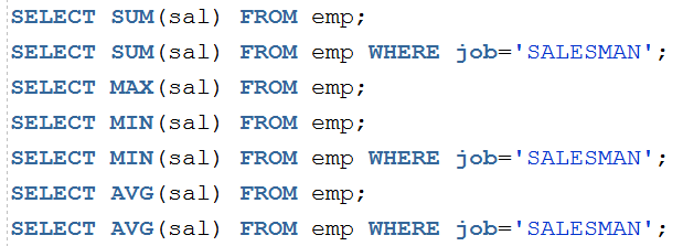 *그룹함수는 SELECT절에서 단독으로 쓸 수 있으나 다른 칼럼정보를 함께 출력할 수 없다.