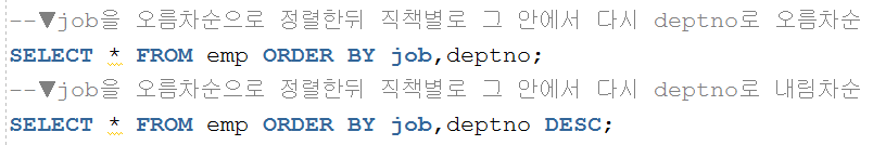 - ORDER BY절에서 열을 명시하고, 열 이름은 쉼표(,)로 구분한다,