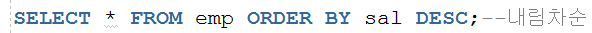 ORDER BY절을 사용하는 경우 SELECT문의 맨 뒤에 기술 되어야 한다.