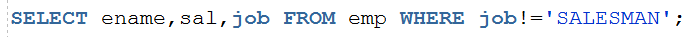 ▲ != 는 NOT 과 같은 의미이다. 즉, job이 SALESMAN이 아닌 사람들의 이름,연봉,직책을 출력한다.