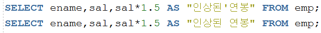 - 별칭에 공백을 주거나 '을 주고 싶을때는 무조건 "으로 감싸라