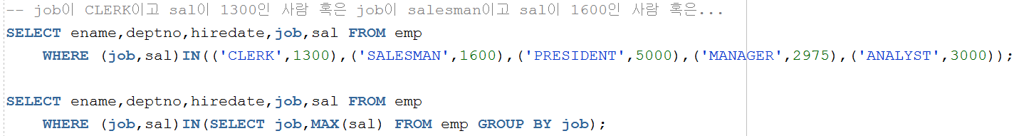 ▲ job과 deptno사이에는 보이지 않지만 AND가 있다.