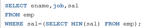 ▲ emp테이블에서 sal이 sub쿼리인 사람들의 이름과 직책, 연봉을 출력