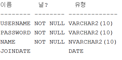 ▲ 내가만든 MEMBER테이블의 구성내용