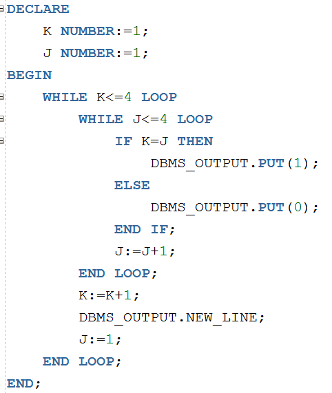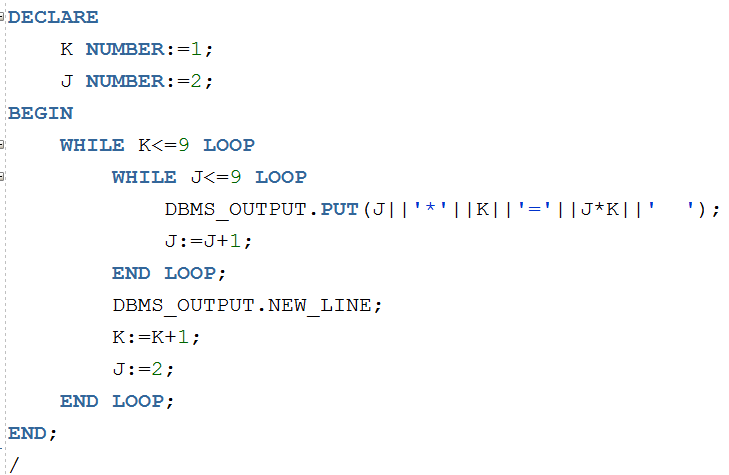 | WHILE condition LOOP statement1; statement2; END LOOP; WHILE(condition){ } |