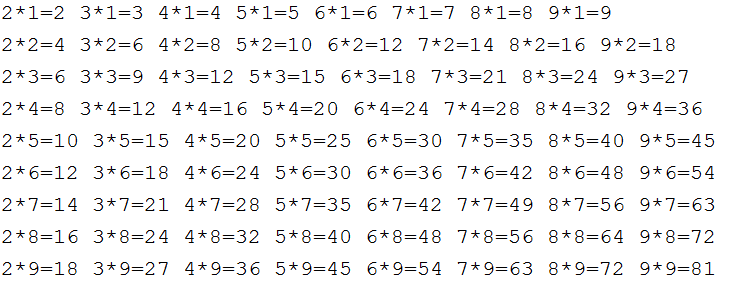 ▲ 위 형태의 구구단을 출력하는 FOR문 코드