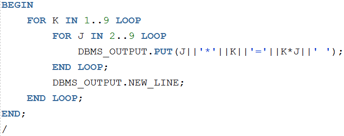 DBMS_OUTPUT.NEW_LINE; (줄바꿈 하는 함수)