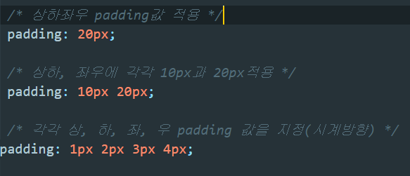 padding값을 좀 더 세밀하게 조정하고 싶을 때는 아래와 같은 방법을 사용하면 된다.