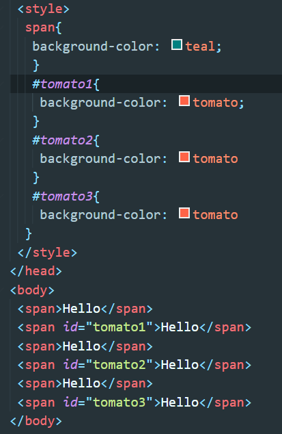 ▼ 아래처럼 두번째, 네번째, 여섯번째 <span>에 각각 다른 id를 부여하고, 또 각각의 id에 style값을 지정하면 된다.