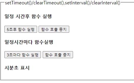 타이머 변수=setInterval("함수명()" 혹은 콜백함수,1000분의 1초)