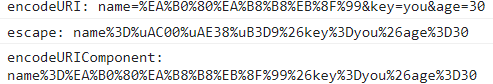 ▲보다시피 encodeURI는 특수문자 등을 인코딩하지 않고, encodeURIComponent는 escape보다 더 복잡하게 인코딩 즉, 인코딩이 잘 된다.