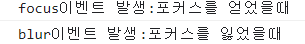 <input type="text" onfocus="console.log('focus이벤트 발생:포커스를 얻었을때')" onblur="console.log('blur이벤트 발생:포커스를 잃었을때')" />