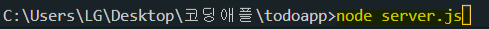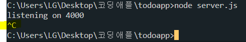 (터미널에서 ctrl + c 누르시고 서버를 끈 다음 node server.js 입력해서 서버를 재시작해야한다.)