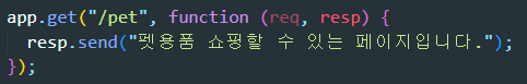 우리는 우리서버의 /pet 경로로 접속하면 '펫용품 쇼핑할 수 있는 페이지입니다.' 라는 안내메세지를 띄워주는 서버를 만들어보도록 하자.
