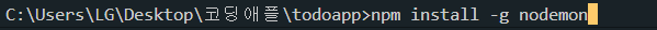 위와같이 터미널에 입력해주고 nodemon을 설치하도록 하자.