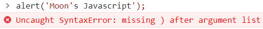 browser의 속마음 : "Moon은 문자열로 하라고? OK! 근데 마지막에 작은 따옴표로 열었으면 닫아줘야지! 어디까지를 문자열로 보라는 거야?!"