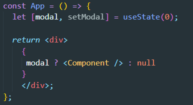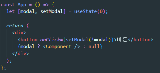 그리고 나중에 필요하면 스위치 조작만 하면 되는 섭니다. 스위치는 state, 전등은 <Modal>입니다.