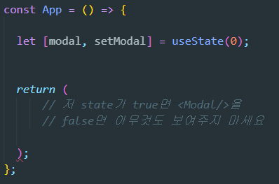 저 state가 true면 <Modal></Modal> 보여주고 false면 아무것도 보여주지마세요~