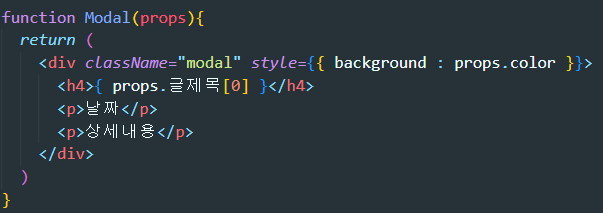 <Modal color={'skyblue'} /> 이러면 하늘색 모달창이 생성됩니다.