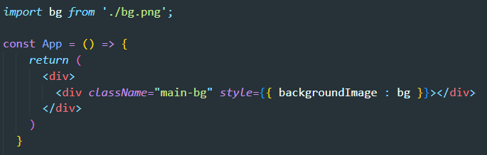 <img>태그 쓰고싶으면 <img src={bg}/> 이렇게 써도 보입니다. 귀찮으면 css파일을 활용합시다.