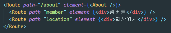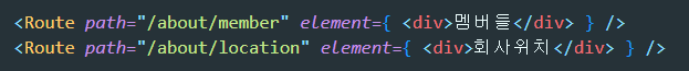 /about/member로 접속시 <About/>안에 <div>멤버들</div> 을 보여줍니다.