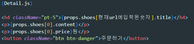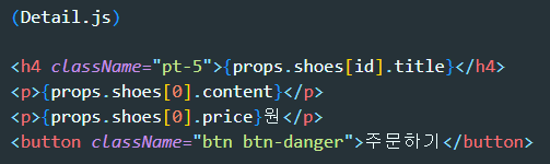 그래서 props.shoes[id].title 이러면 아까 의도했던 기능이 완성되겠군요.