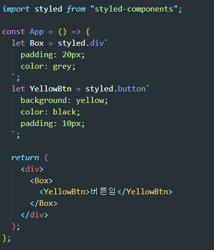 1. <div>를 하나 만들고 싶으면 저렇게 styled.div 라는걸 사용하면 됩니다.