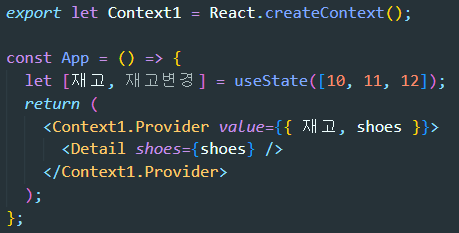 심지어 Detail 안에 있는 모든 자식컴포넌트도 useContext() 쓰면 자유롭게 재고 state를 사용가능합니다.