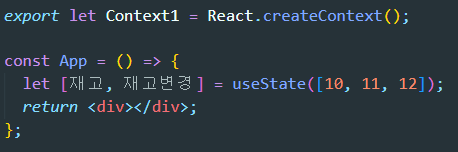 ▲ 1. 일단 createContext() 함수를 가져와서 context를 하나 만들어줍니다.