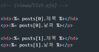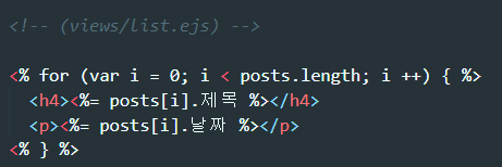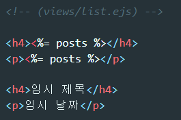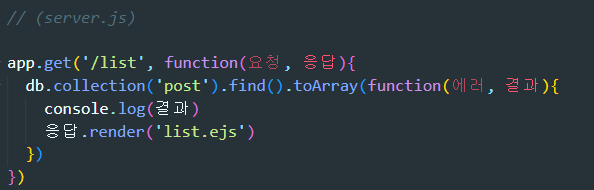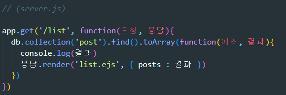 list.ejs 파일을 렌더링함과 동시에 {posts: 결과} 라는 데이터를 함께 보내줄 수 있습니다.