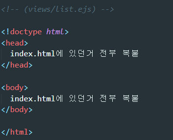 그 전에 주의할점 : 작업폴더 내에 views라는 이름의 폴더를 하나 만드신 후 거기에 list.ejs 파일을 만드셔아합니다.